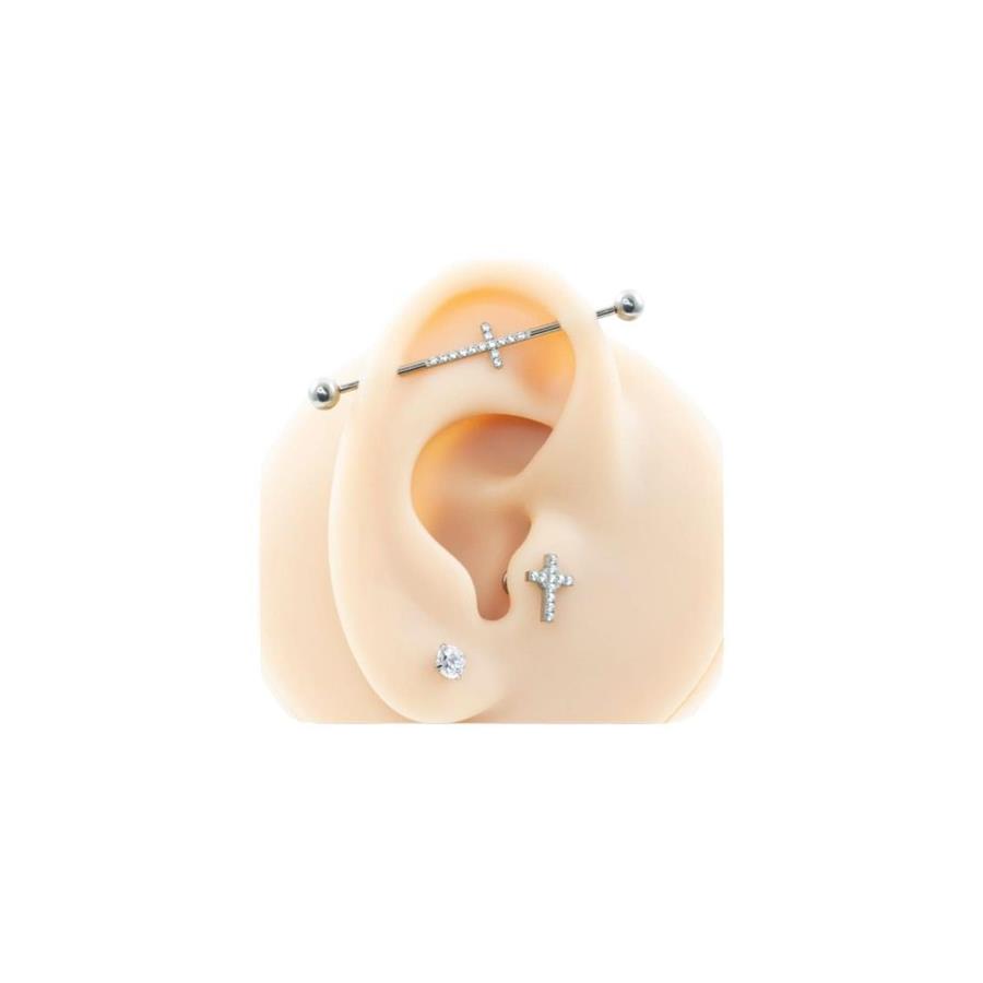 Labret Titânio R/Interna Cruz Cravejada - 8mm (Cód: 2008)
